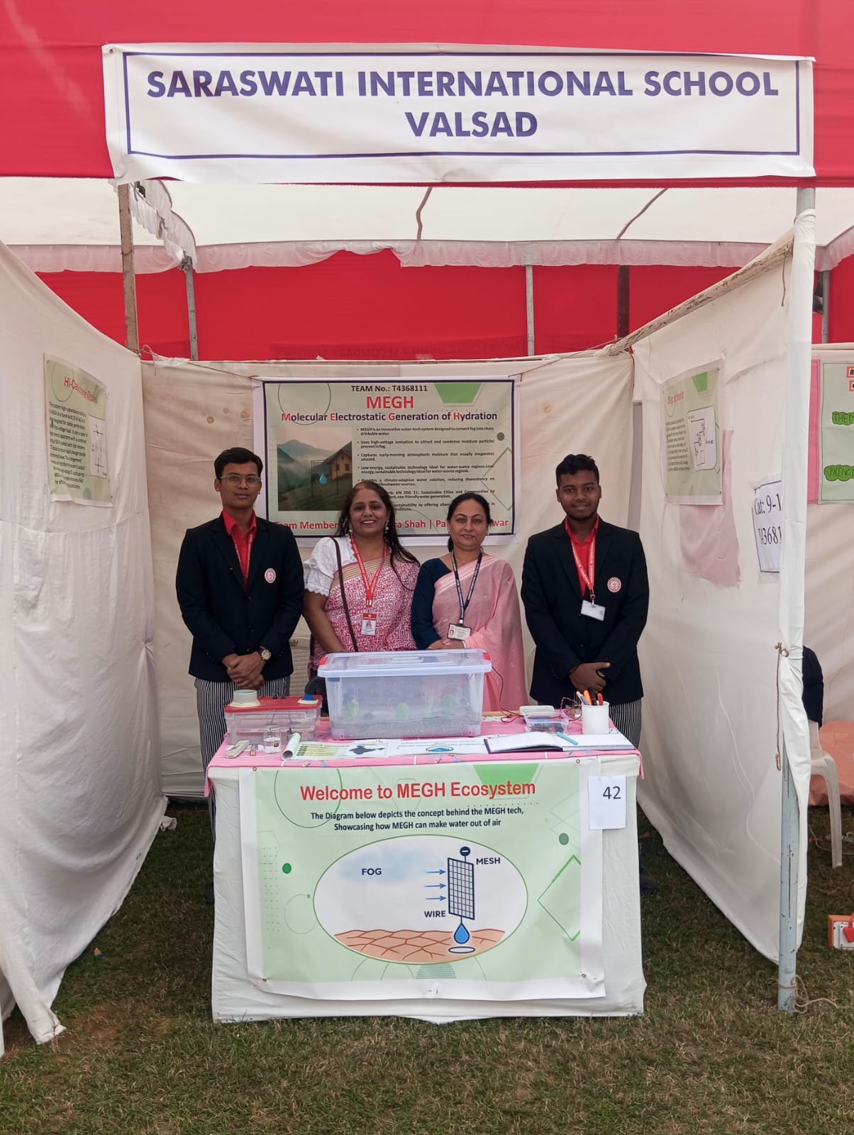 Saraswati International School feels immensely proud to announce that our brilliant students have once again brought glory to our school!!! Team “MEGH”, represented by Pushpendra Shah and Parv Nandanwar of Grade XI has showcased exceptional innovation and dedication, at the CBSE Science Exhibition 2025-26, winning at the Zonal Level and advancing to the National Round with their remarkable project “Molecular Electrostatic Generation of Hydration.” Their concept of converting fog into clean, drinkable water through high-voltage ionisation not only reflects scientific excellence but also aligns with sustainable development goals. This achievement truly highlights their hard work, creativity, and commitment to building a better, greener future. A heartfelt congratulations to both the young innovators for making us proud! Wishing them the very best of luck for the Nationals—may they shine even brighter!
